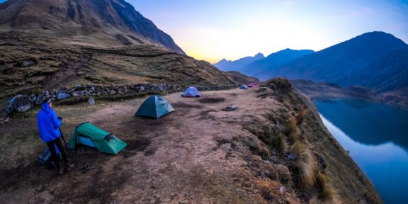 Kamarád PJ – snad aby nezůstal pozadu – se rozhodl k snižování váhy batohu přidat. Na treku v Peru vycházel na spaní jako lichý a přivezl si nový stan. Celé roky vozil takový pěkný kvalitní, ale pro letošek se rozhodl, že je zbytečně velký a těžký a pořídil si stan pro jednu osobu. Tento nový model měl své prokazatelné výhody a PJ nám je před odletem rád ukazoval. Vážil méně než lahev s vodou a velikostně za ní taky nezaostával. Neustále nás všechny nutil, ať ho potěžkáme, a přitom nám vysvětloval, kolik váhy a místa ušetřil.