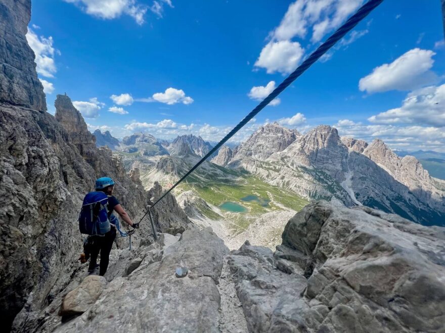Nicméně, pokud jste dočetli až sem, pak jste na správné cestě vrcholnému zážitku, chcete strávit na ferratách delší dobu nebo se chcete dostat i do míst, kam už se davy turistů a ferratistů nehrnou. Vyhraďte si v kalendáři čtyři až pět dní (i s cestou) a dojeďte na konec údolí Val Fiscalina (placené parkoviště). Do hor nastoupíte ze severní strany a první den se rovnou přes ferratu Alpinisteig dostanete na chatu Zsigmondy-Comici.