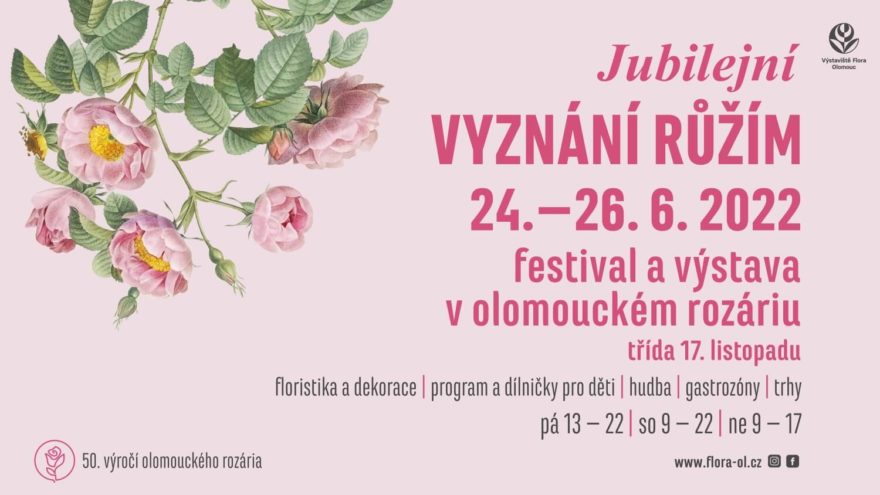 Bohatý program pro všechny generace, dílničky i zážitky pro děti, koncerty, gastrozóny, degustace vín, trhy či floristické show a aranžmá. To vše je mimo jiné součástí festivalu a výstavy Vyznání růžím, jenž se od pátku 24. do neděle 26. června koná v olomouckém rozáriu na třídě 17. listopadu. Jeho součástí bude i oslava 50. výročí tohoto výjimečného areálu.