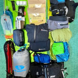 Batohy a vesty se na mě střídaly dle věcí, který jsem potřeboval táhnout s sebou … Montane vesta, 15l vesta batoh z Dekáče a Salomon 22 litrovej běžeckej bágl. Všechno sedlo na jedničku, jen je třeba pohrát si s uspořádáním věcí.