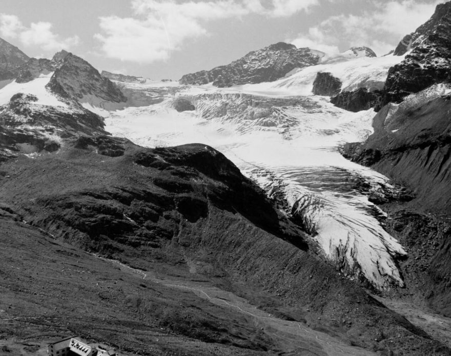 Porovnání fotografií: Ledovec Ochsental, Silvretta Group (1973 – dnes)
