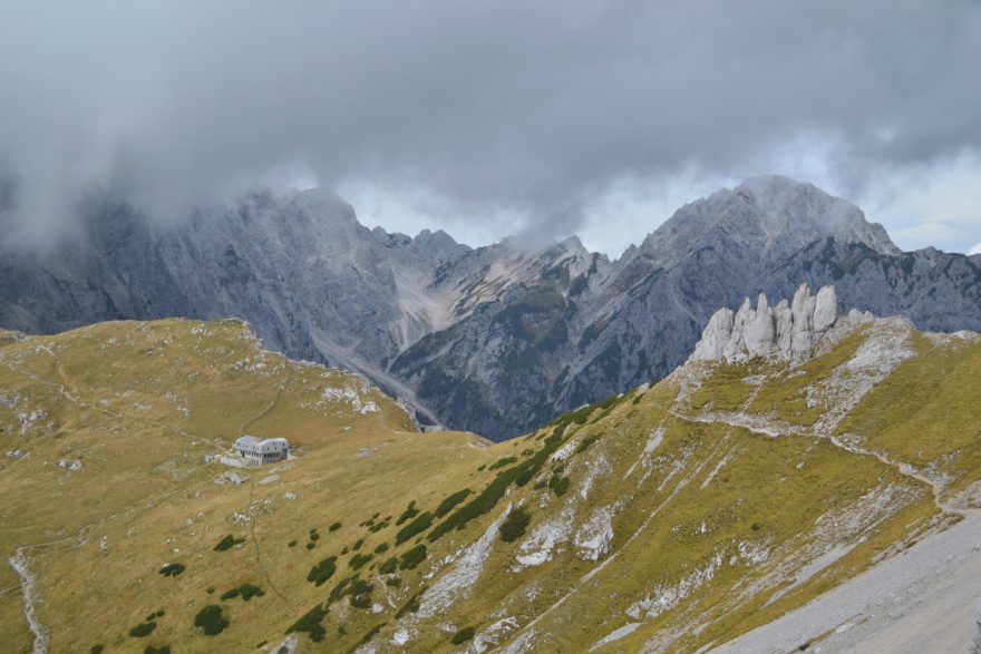 Exponované sedlo Kotliči mezi Kamnickým sedlem a Turkou gorou. Kamnicko-Savinjské Alpy, Slovinsko.