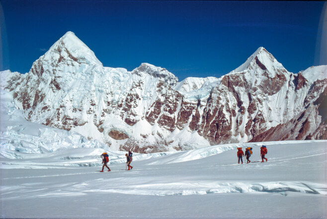 Reinhold Messner při přechodu Antarktidy přes jižní pól v roce 1990.