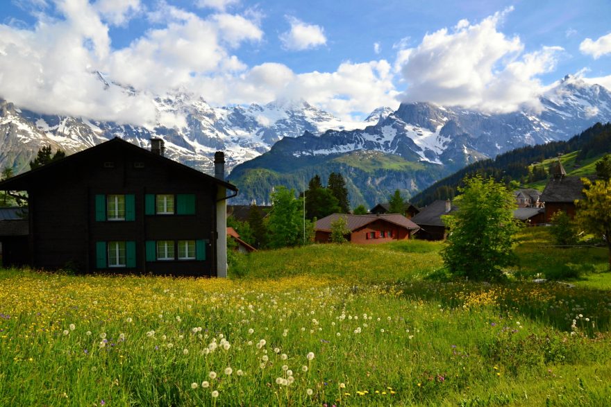 Poklidné alpské městečko v podhůří Bernských Alp – Mürren, Švýcarsko.