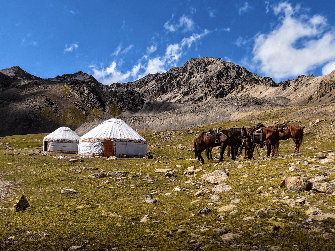 Na treku se spí se ve stanu, ve dvou třetinách trasy jsou jurtové hostely Altyn Arashan, Kyrgyzstán