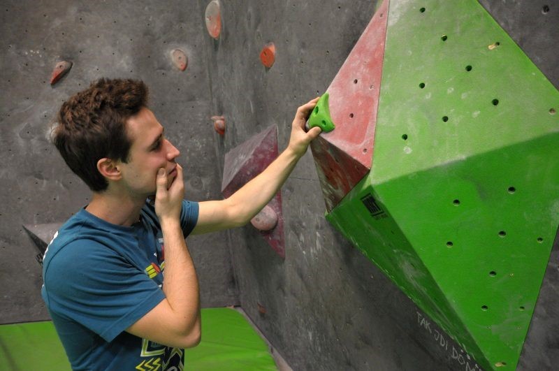 Denis Pail staví cesty pro závody v lezení.
