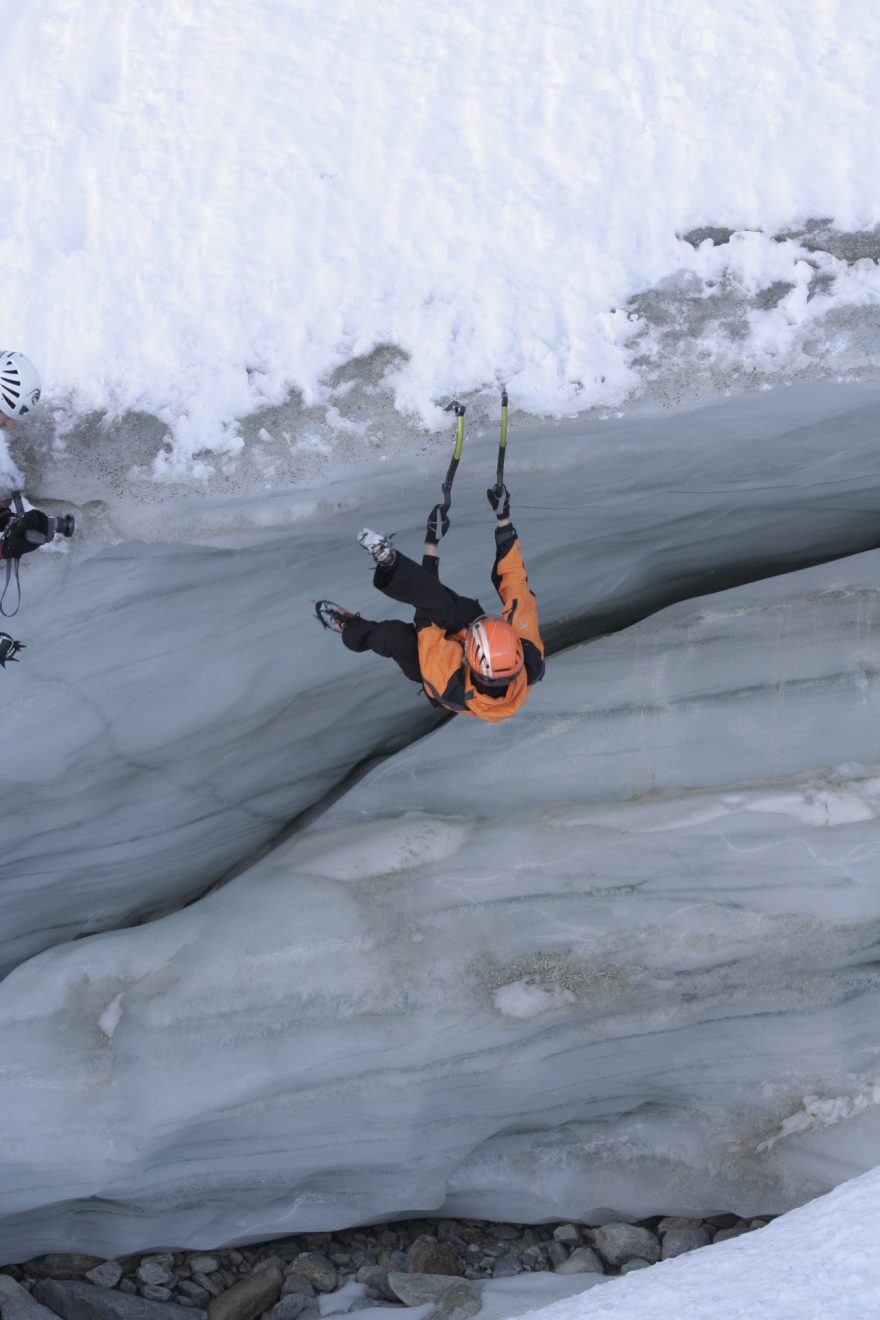 V ledopádech se nejčastěji jistí pomocí ledovcových šroubů.
