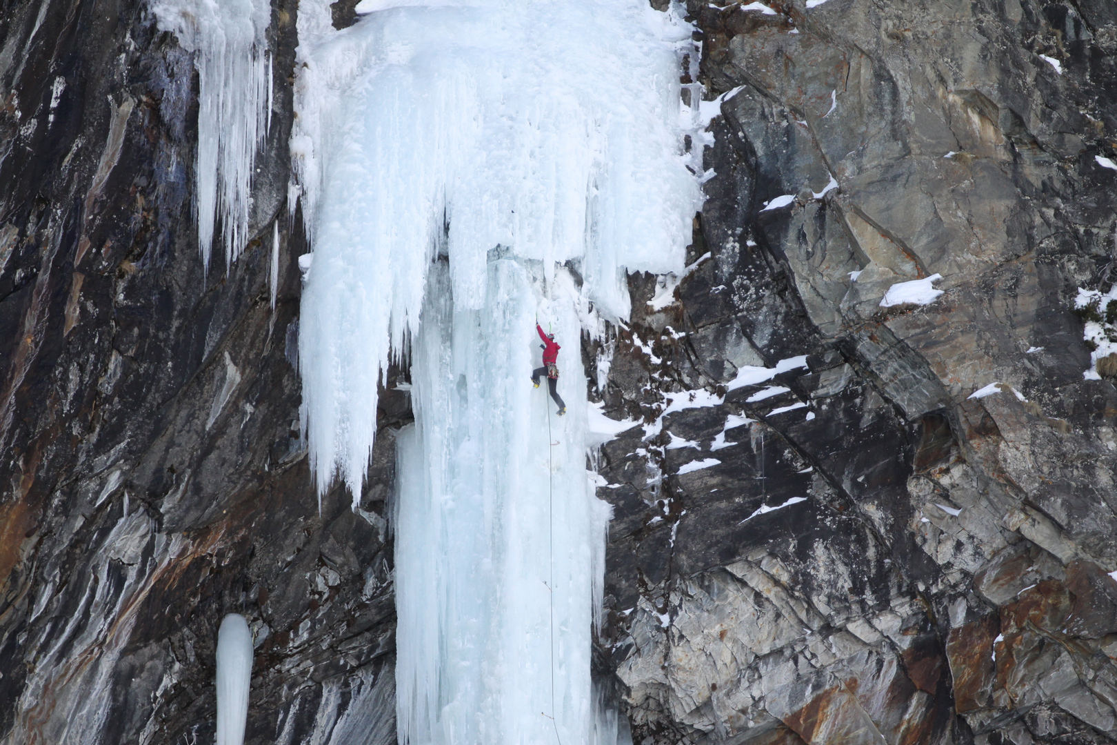 Lézt můžete na cvičné ledové stěně za barákem, anebo zvolit vyšší level