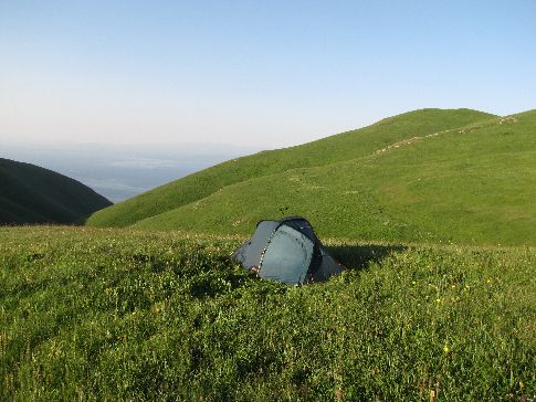 Stanování pod sedlem, Aregunský hřeben, Arménie
