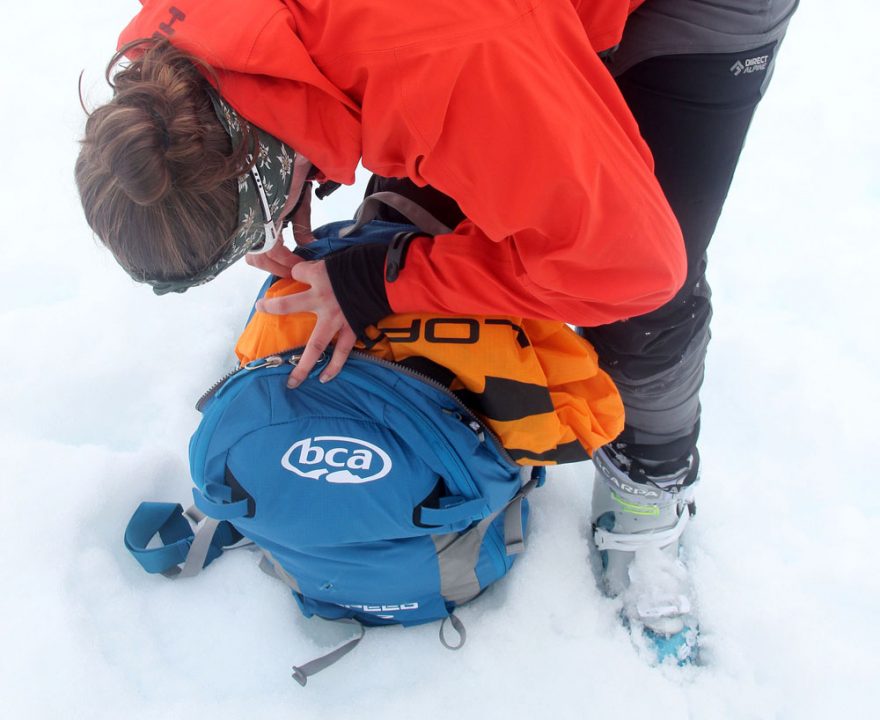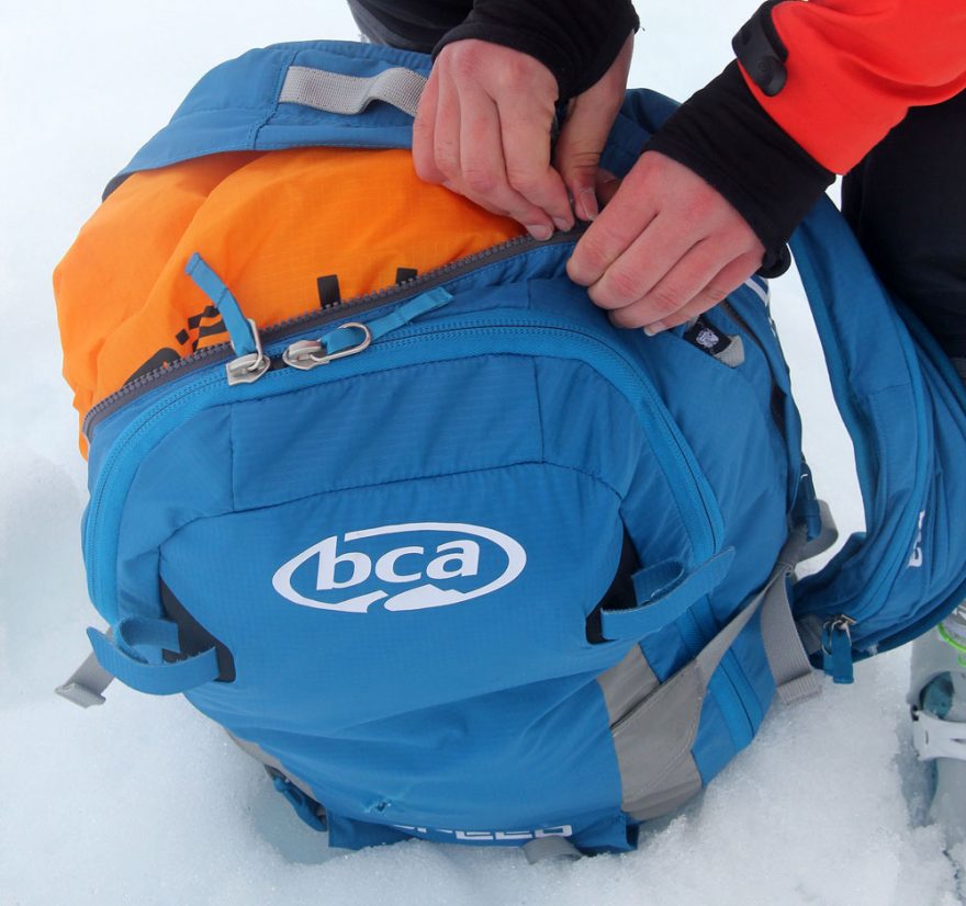 Zapínání krycího zipu lavinového batohu BCA 27 Speed
