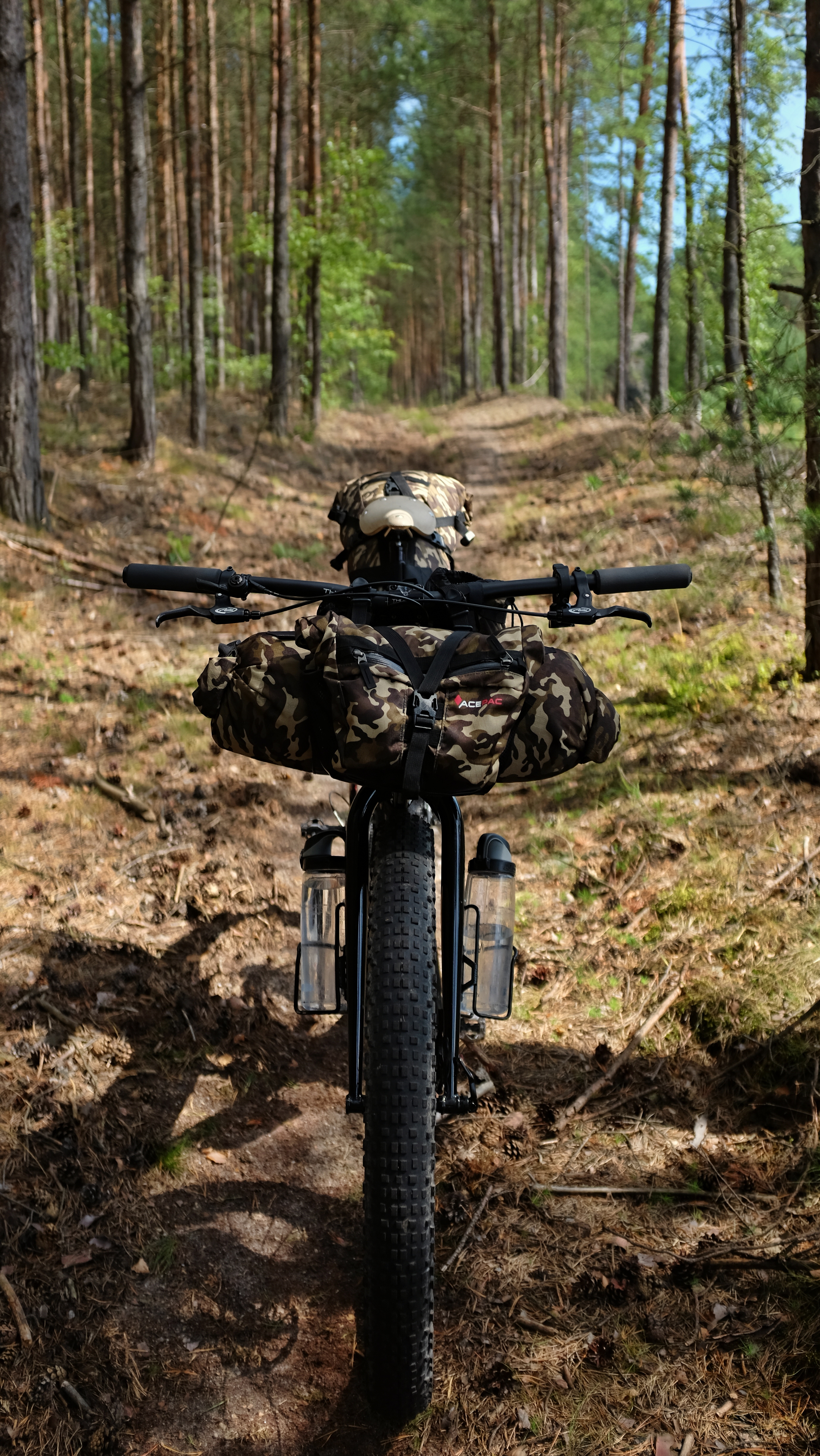 Oproti tradičnímu systému s nosiči a brašnami po stranách se bikepackingové (beznosičové) brašny drží v ose kola.