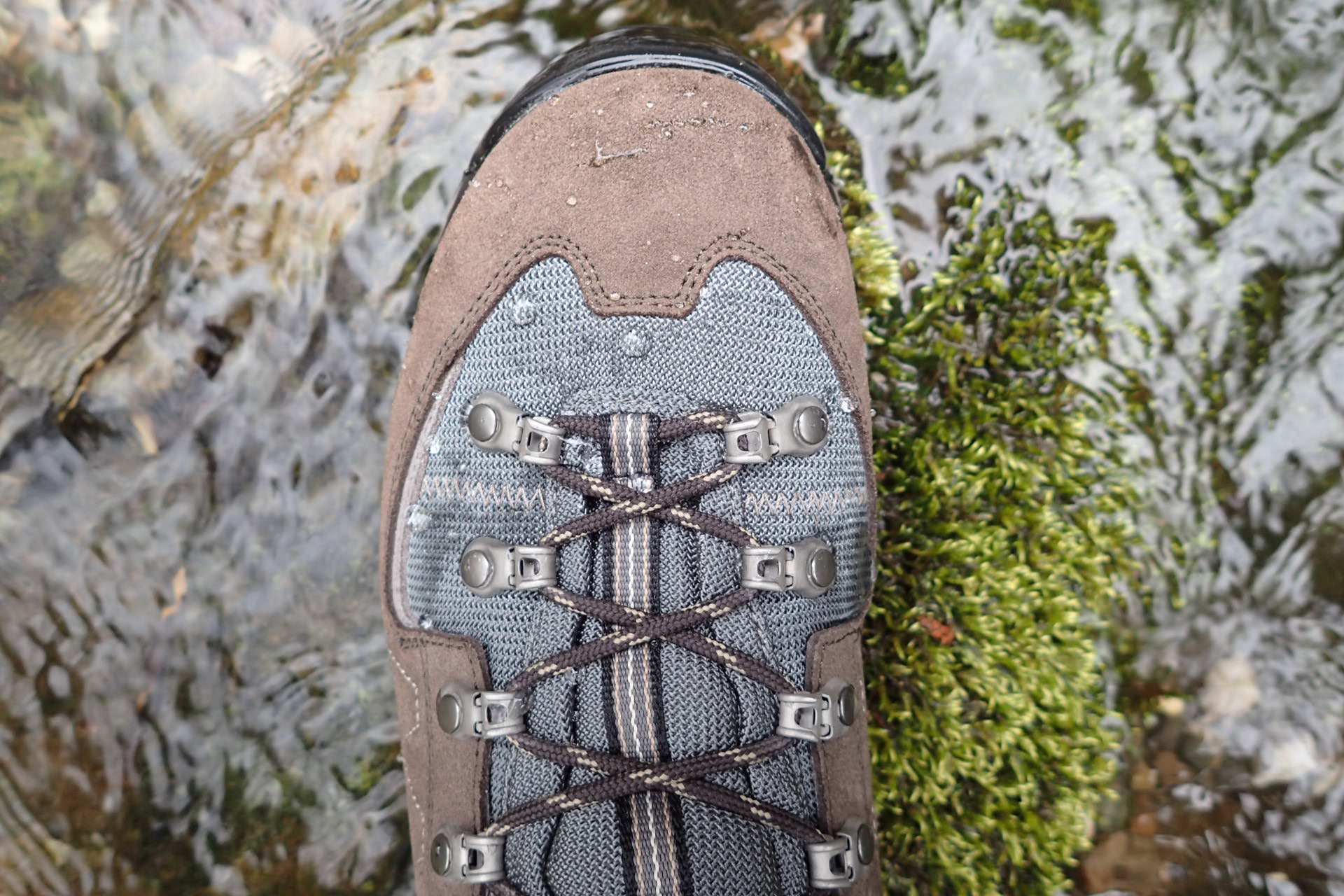 Na nové botě se i po vstupu do vody zatím tvoří vohní kuličky. Bota stále bez ošetření.