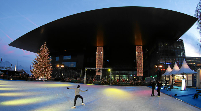 Venkovní kluziště jsou velmi oblíbené, Kandertal, Švýcarsko