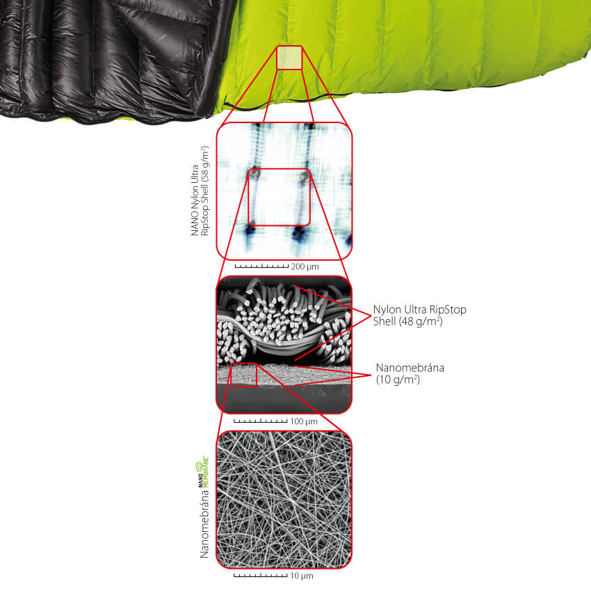 Aplikovaná nanotechnologie na svrchním materiálu spacáků KWAK.