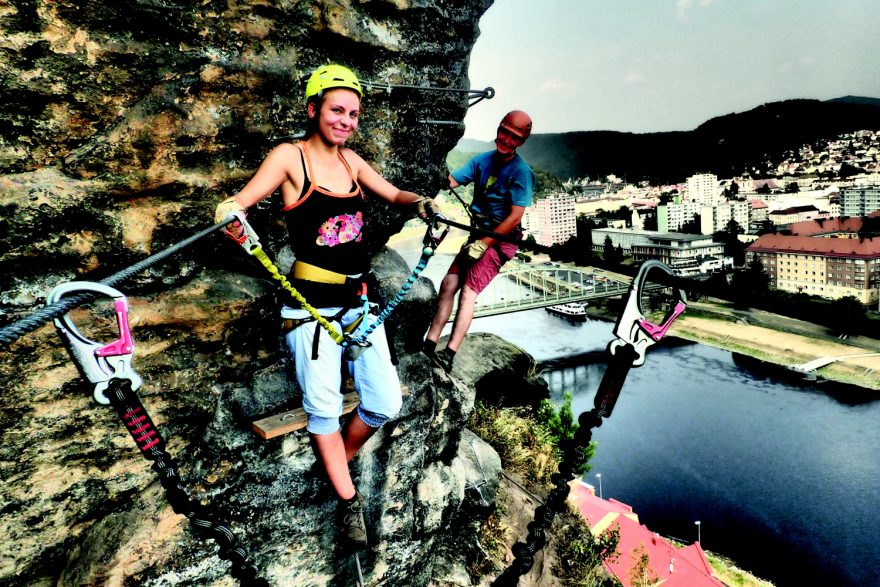 Pastýřská stěna v Děčíně nabízí šestnáct ferat různé obtížnosti.