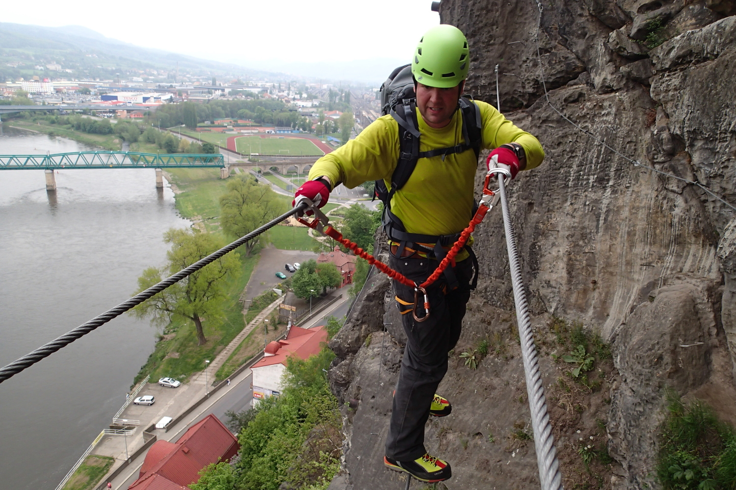 Lanový Karlovův most (D) na Pastýřské stěně je vděčným tématem fotografií z výstupu.