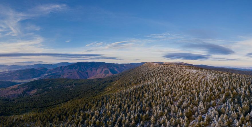 Červená hora, vzadu Praděd a pohled na část hřebenovky, Jeseníky