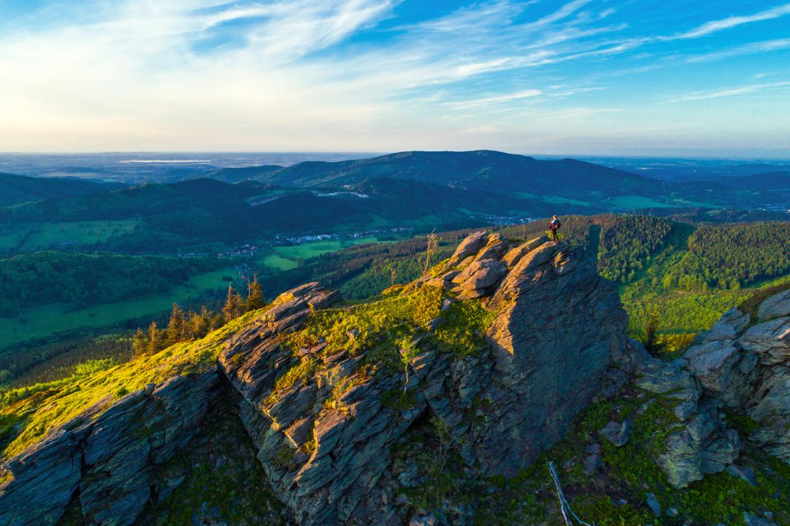 Obří skály v posledních paprscích slunce, Jeseníky