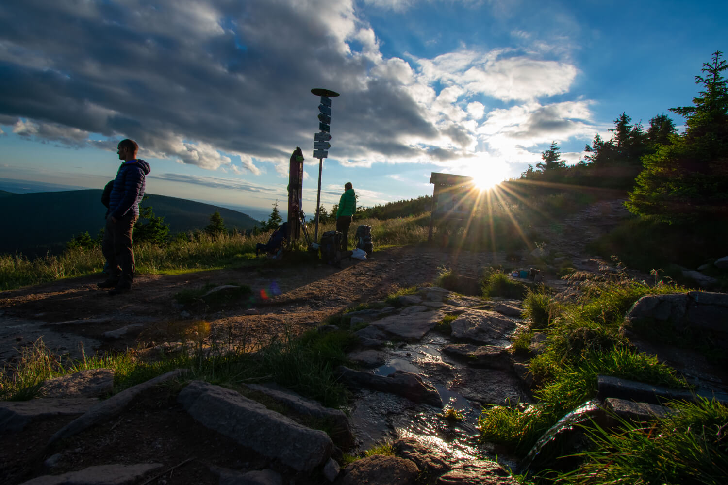 Západ slunce na Králickém Sněžníku, u pramene řeky Moravy