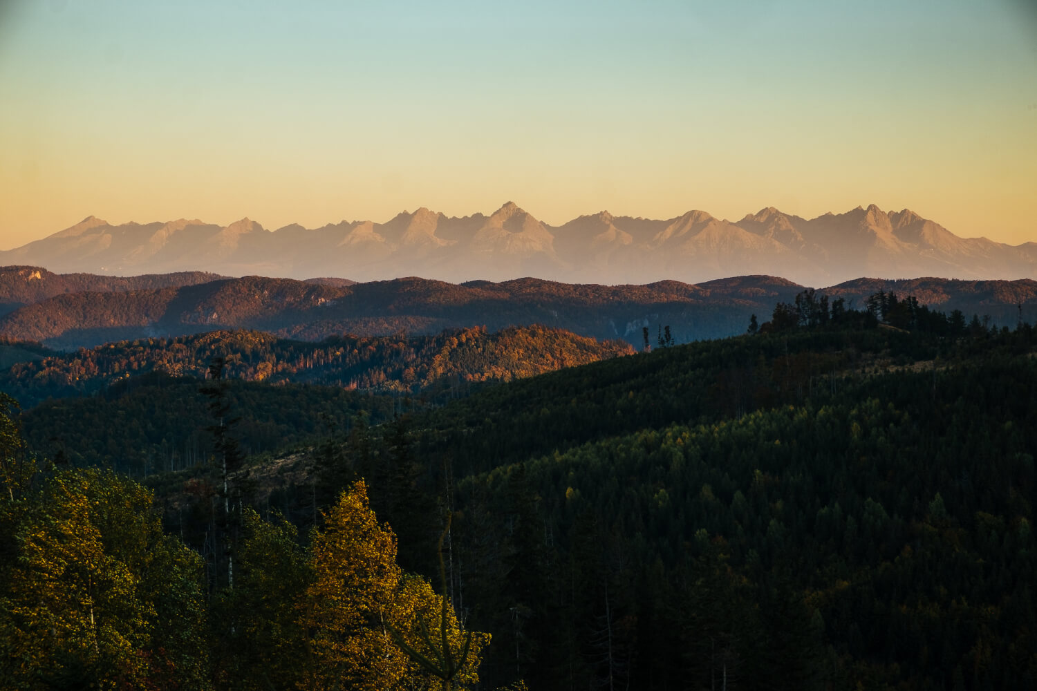 Pohled na Vysoké Tatry ze západní části Volovských vrchů. Cesta hrdinů SNP, Slovensko.