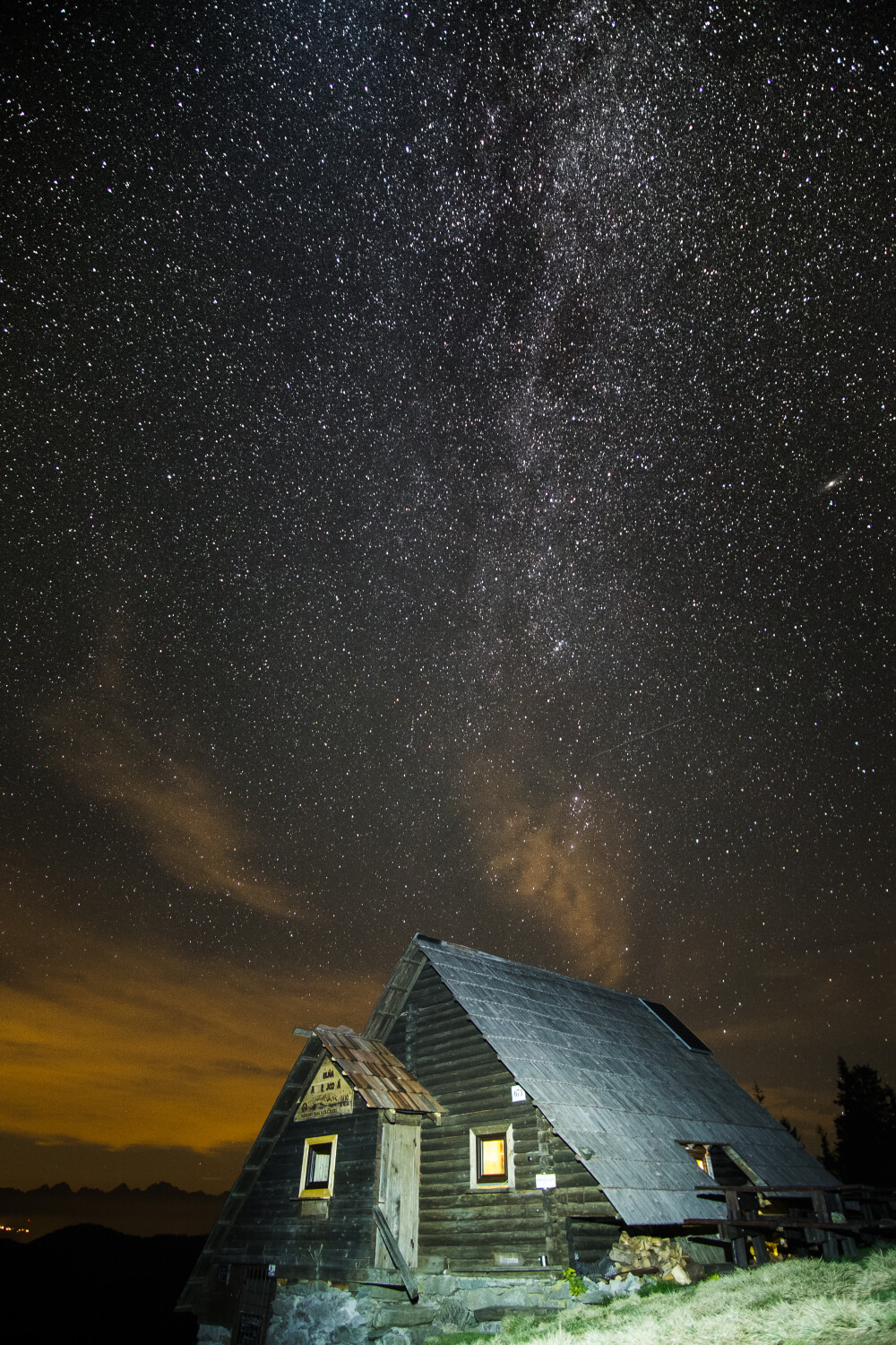 Útulna Andrejcová v Nízkých Tatrách, vzadu Vysoké Tatry, Slovensko