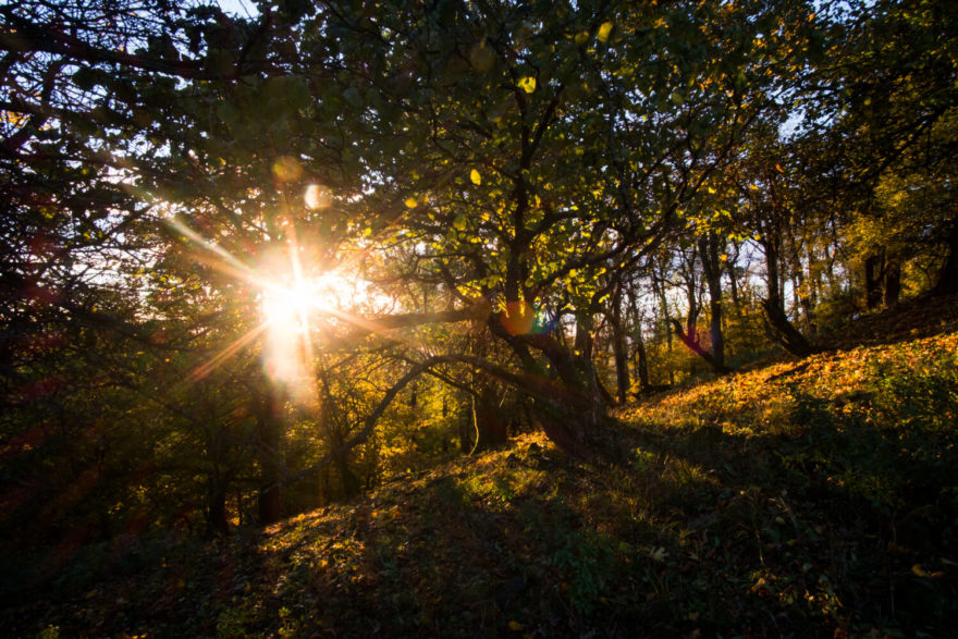 Výhledy z vrcholku Vápenná (752 m), Malé Karpaty, Slovensko. Cesta hrdinů SNP