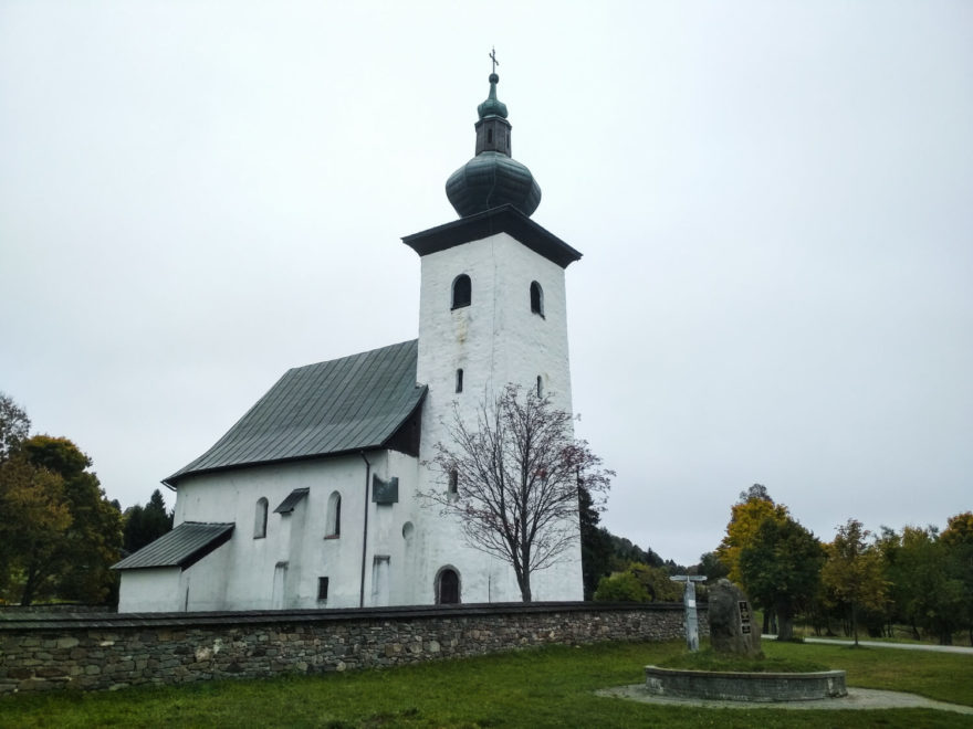 Kostel svatého Jana Křtitele nad obcí Kremnické Bane v Kremnických vrších leží v geografickém středu Evropy. Cesta hrdinů SNP, Slovensko.