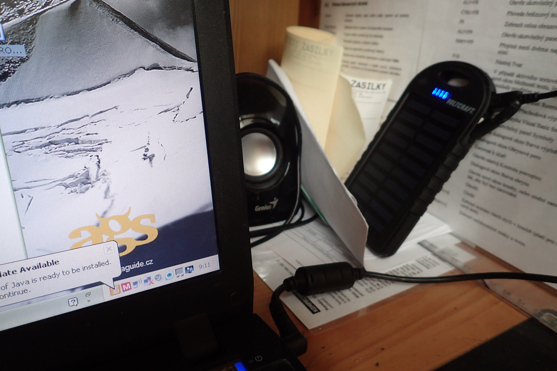 Modré kontrolky značí, že se solární nabíječka nabíjí.
