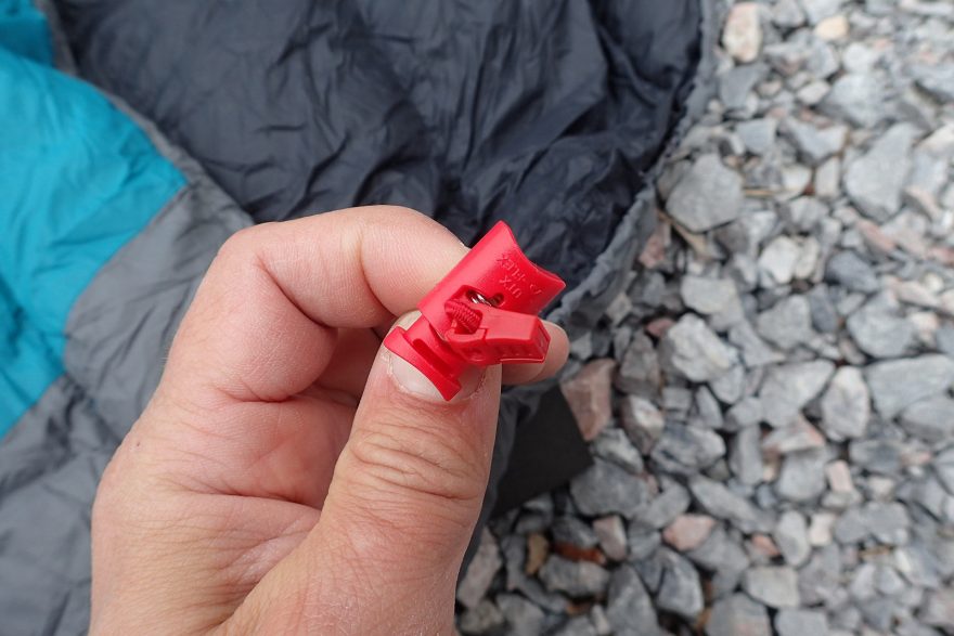 Při zapnutém spacáku je horní zip bez zajištění suchým zipem či přídavnou légou.