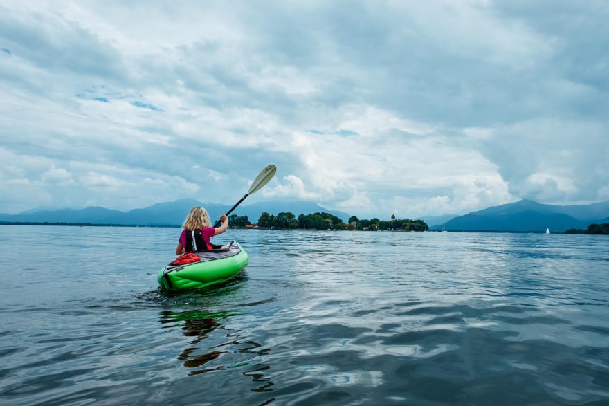 Díky kajaku se dostanete na opuštěné menší ostrůvky, Chiemsee, Německo