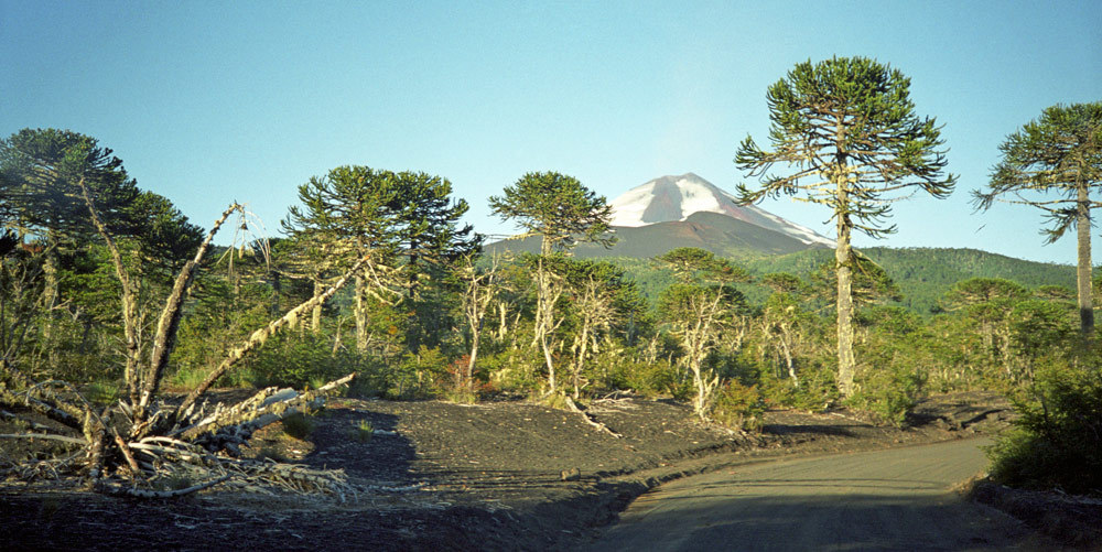 Araukárie a pravěká krajina v národním parku Conguillío, Chile
