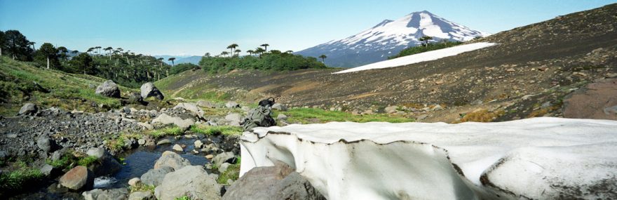 Pohled na vulkán Llaima (3125m) ze stezky Sierra Nevada, Chile