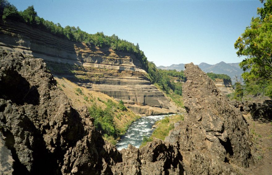Krajina utvářená lávou podél řeky Truful-Truful, národní park Conguillío, Chile
