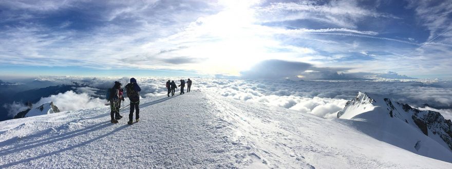 Na Mont Blanc vede několik výstupových tras. Výstupy se uskutečňují od začátku června do půlky října.