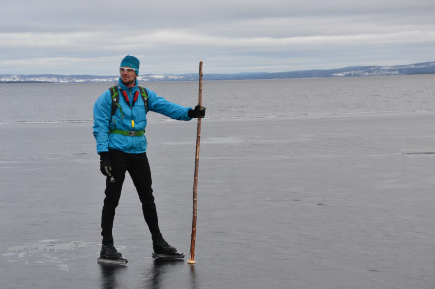 Bruslařská tyč slouží ke kontrole kvality a tloušťky ledu při dálkovém bruslení