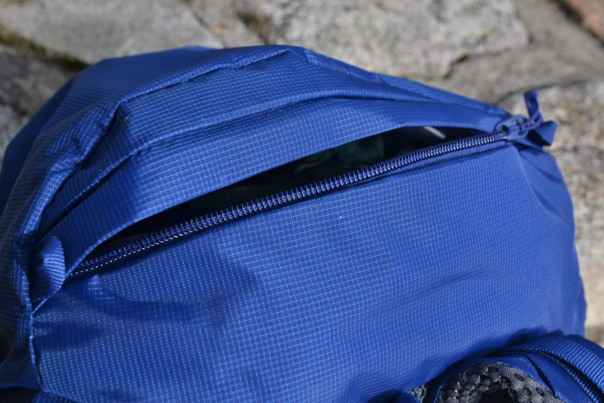 Integrovaná pláštěnka je uložená v kapse na zip na dně batohu.