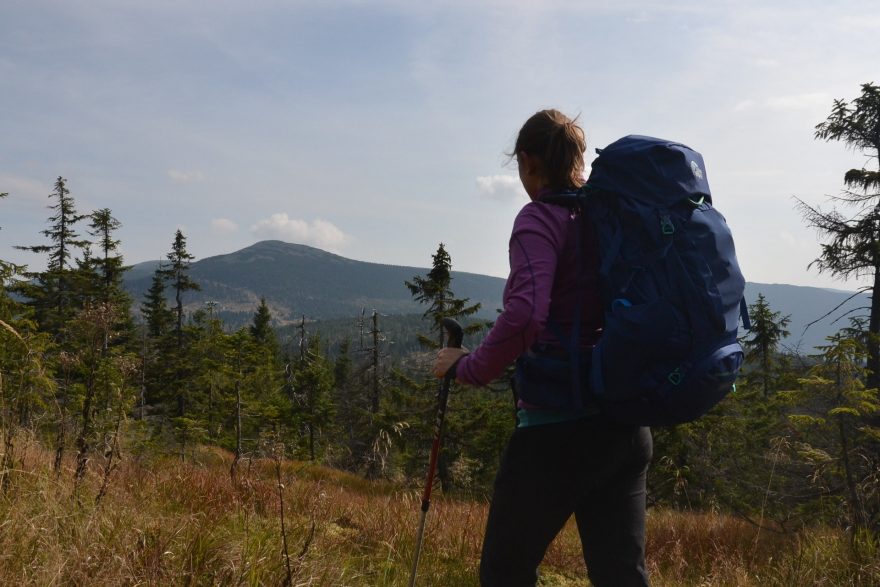 Velikost plného batohu o objemu 55 l. Ještě o 10 l víc se dá získat posunutím víka nahoru.