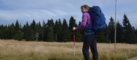 Gumička se svorkou drží vrchní část hole. Díky háčku se dá gumička snadno uvolnit a hůl vyháknout.