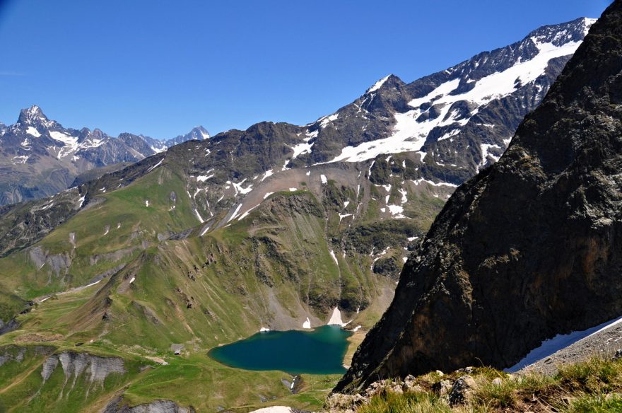 okolí Lac Muzelle, GR 54 neboli Tour de I’Oisans, NP Écrins, Dauphinéské Alpy, Francie.