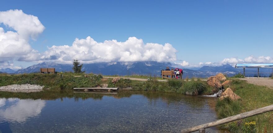 Výhledy z parkurové stezky Streif, Kitzbühelské Alpy, Rakousko.