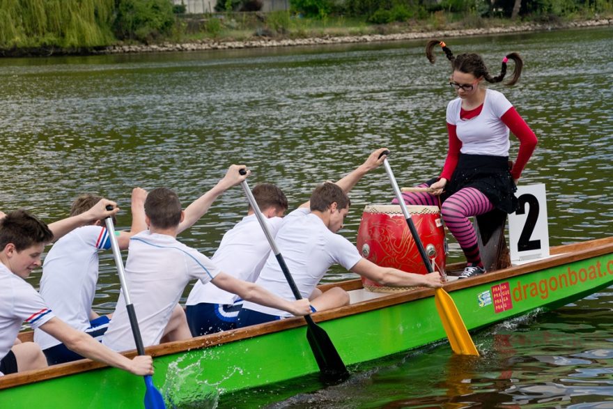 Dvacet pádel, kormidelník a bubeník. Víkendový Den Labe zval amatérské nadšence k závodu dračích lodí