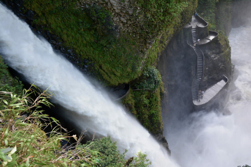 Ptačí pohled do rokle vodopádu Pailón del Diablo, Ekvádor