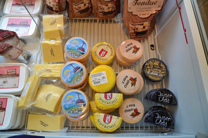 Prodejna domácích sýrů v klášteře, Engelberg, Švýcarsko.