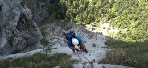 Via ferrata Attersee s výhledy na stejnojmenné jezero. Solná komora, rakouské Alpy