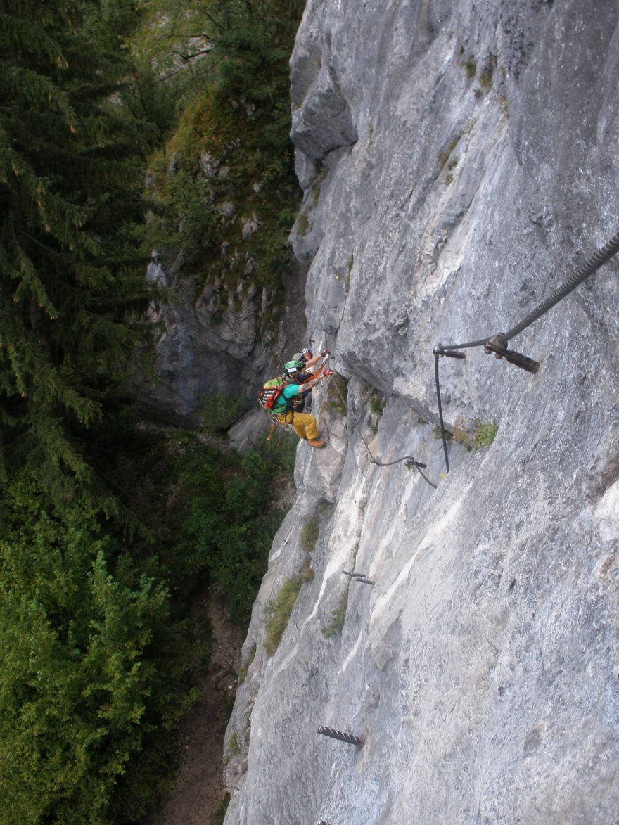 Výhledy na jezero Leopoldsteiner z feraty Kaiser Joseph Klettersteig Seemauer, Hochschwabgruppe, rakouské Alpy