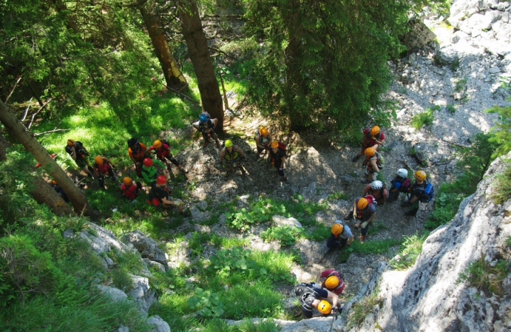 Vzdušná pasáž via feraty Leadership Klettersteig, Solná Komora, rakouské Alpy. Foto Klára Kovářová