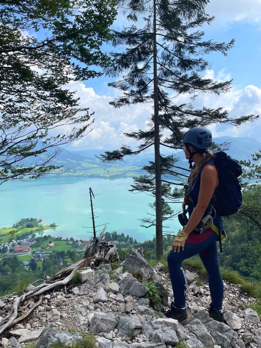 Po cestě je dost míst k odpočinku. Ferata Drachenwand Klettersteig, Salzkammergut, Solná komora, rakouské Alpy