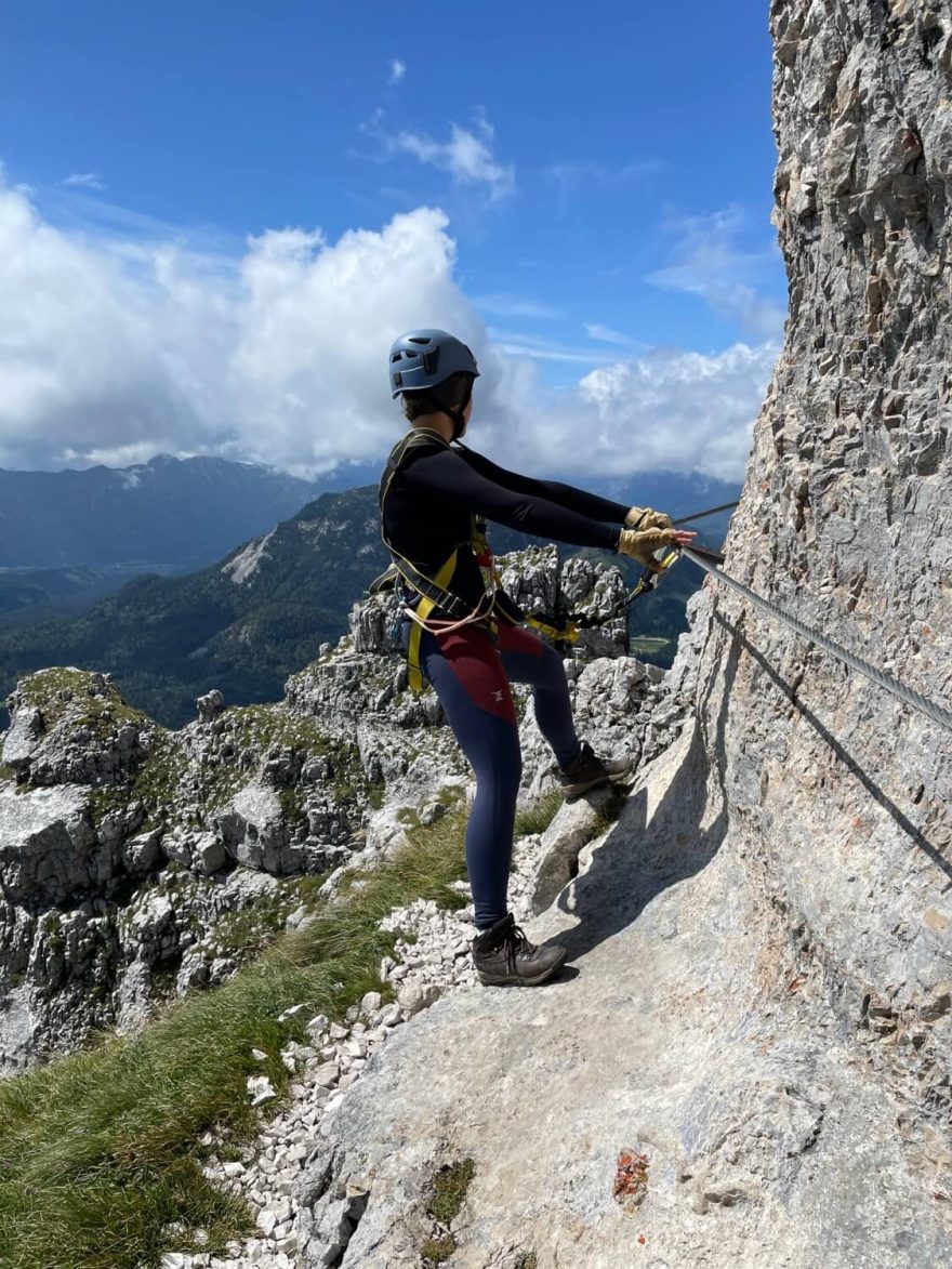 Pohled na jezero Altausseer See z feraty Sisi Loser Panorama Klettersteig, Totes Gebirge, rakouské Alpy