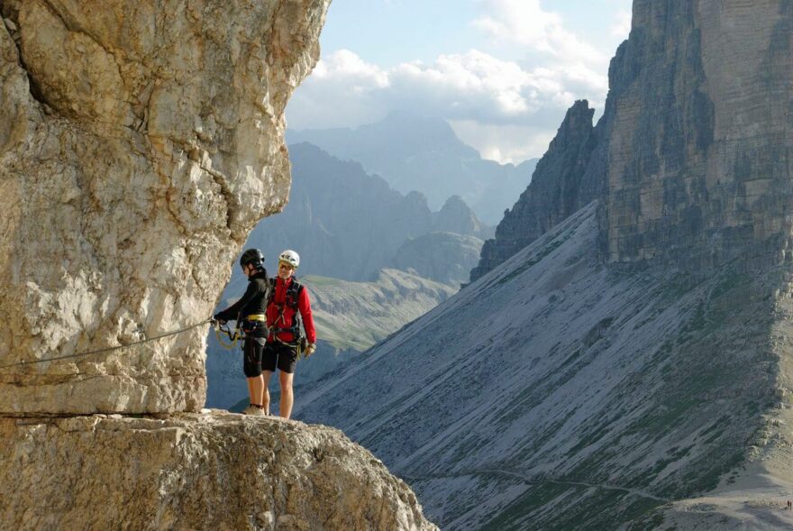 Feratový přechod v blízkosti ikonické formace Tre Cime v Dolomitech