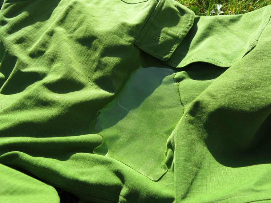 Látka o 5 minut později po vylití vody